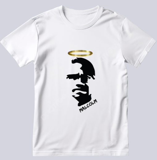 Celebrate the legacy of Malcolm X with this bold, minimalist activist t-shirt. Featuring a striking silhouette crowned with a halo, this Black history shirt honors his fearless fight for truth, justice, and empowerment.